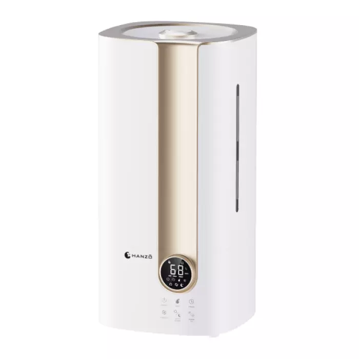 Первое, что бросается в глаза – это современный и лаконичный дизайн. Прибор не займет много места, а благодаря своему дизайну в белом цвете с декоративным золотым элементом, такой увлажнитель воздуха впишется в любой интерьер и станет его изюминкой. Герой нашего обзора имеет компактные размеры (46х22,5 см) и небольшой вес 2,5 кг без воды. Hanzo Z4 можно установить на прикроватной тумбе, рабочем столе или на полу, он везде будет к месту.
