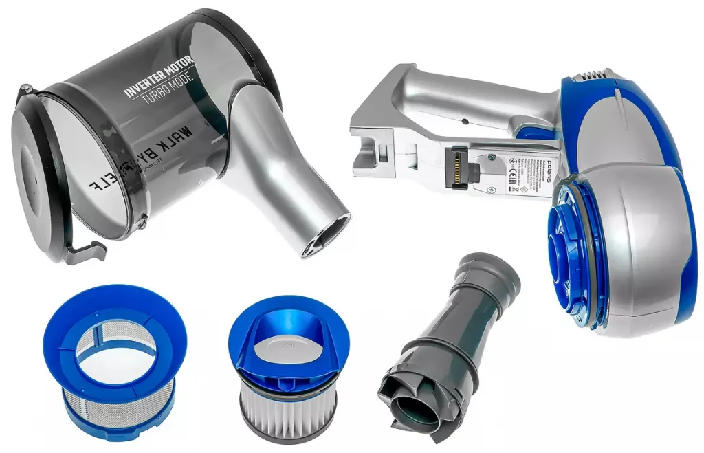 В обзоре акцентируем, что фильтр предварительной очистки и пылесборник можно мыть (обязательно просушить), а НЕРА фильтр лучше чистить сухим способом. Трансформируется беспроводный вертикальный Polaris PVCS в ручной вариант быстро. Но отметим замеченный покупателями недостаток: выходной поток воздуха в этом случае направляется прямо в лицо.