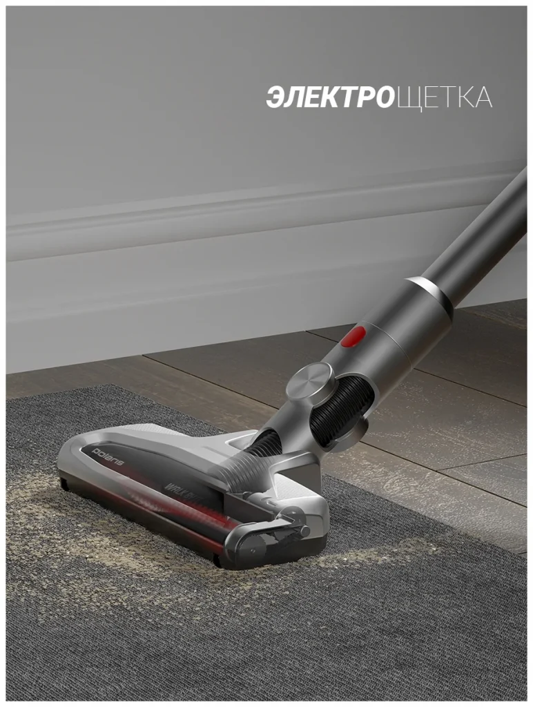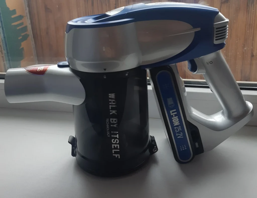 Конечно, данный вертикальный пылесос не является самым мощным на рынке– в турбо режиме его хватает на 10-15 минут, max время очистки – 60 мин. Зато не нужно держать палец на кнопке включения во время работы.