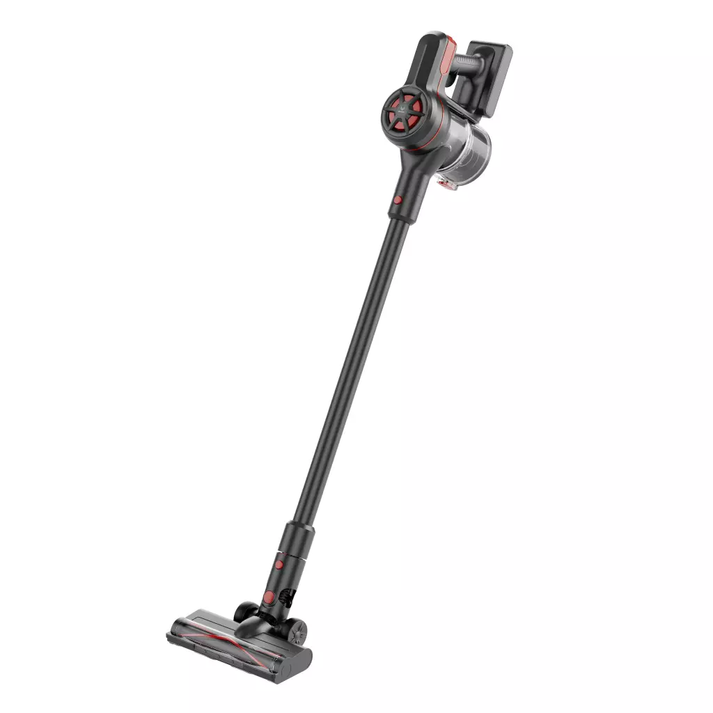 Беспроводной пылесос с HEPA-фильтром и V-образной турбощеткой. Работает на одном заряде 60 минут, быстро трансформируется в портативный вариант. Весит всего 2,3 кг, что делает его идеальным для быстрой ежедневной уборки. Мощность всасывания в турбо режиме достигает 23 000 Па. Цена на официальном сайте — до 17 тыс. р.