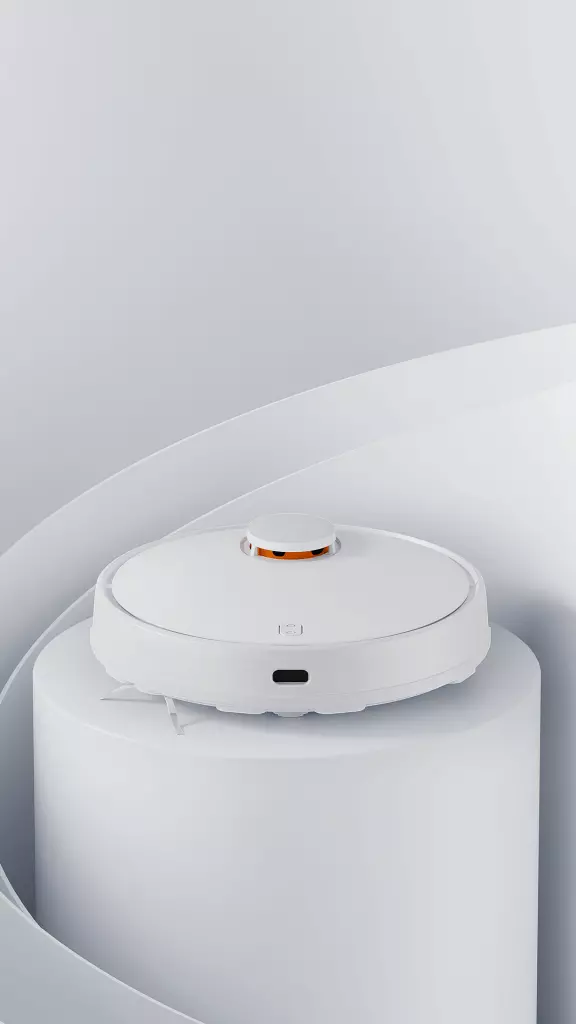 Корпус устройства из обзора имеет круглую форму, выполнен в белых тонах. На первый взгляд никаких изменений со времен Mijia LDS нет: та же башенка с лидаром, поднимающаяся верхняя крышка и классический бампер. Единственное, что бросается в глаза, — верхняя крышка стала матовой.