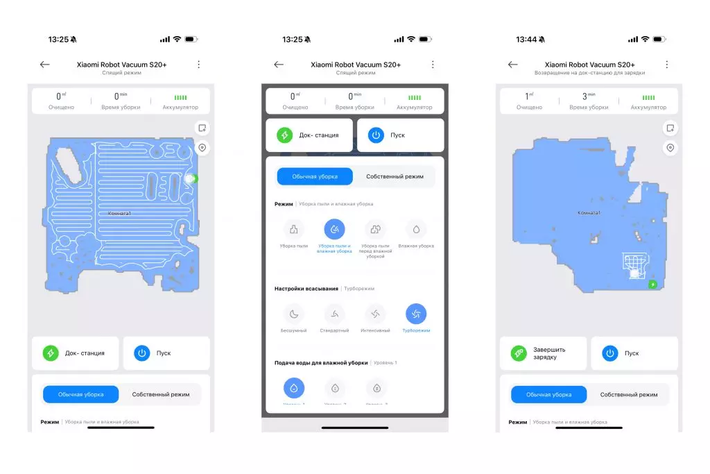 У Xiaomi S20+ три режима режима уборки: сухая, влажная и комбинированная.